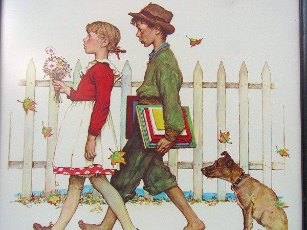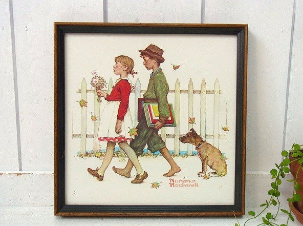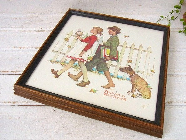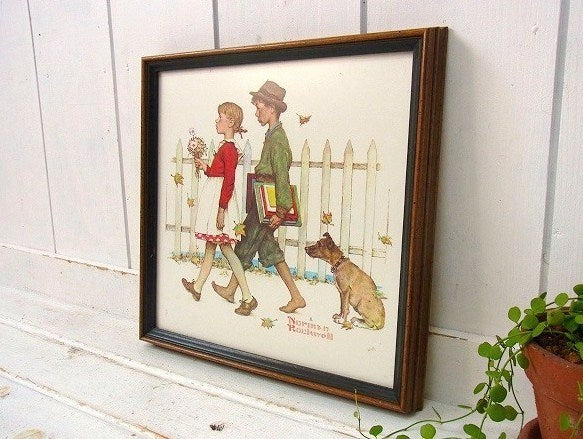 【ノーマンロックウェル】A Scholarly Pace・木製フレーム入り・ヴィンテージ・壁飾り