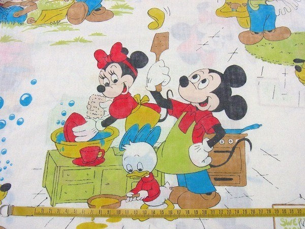 ミッキーやミニー・ドナルドダック・ダックテイルなどディズニーの人気キャラクターの生活の様子が描かれた、とっても可愛いプリントです。