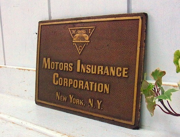 アメリカ西海岸 カリフォルニア州 サンフランシスコで見つけました・・『MOTORS INSURANCE CO.』の厚紙製・30'sヴィンテージ・サインです。