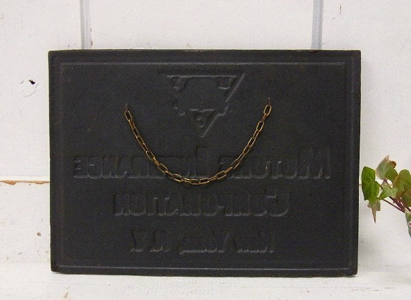 ブラウンベースに、クラシックカーの絵柄と【MOTORS INSURANCE CORPORATION NEW YORK, N.Y.】のエンボス文字が入っております。