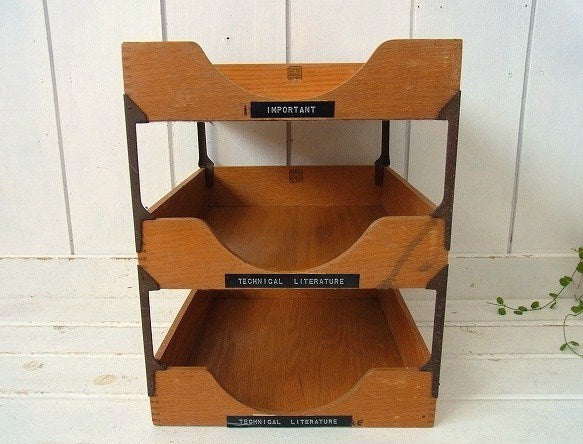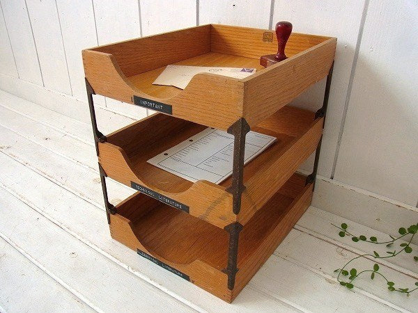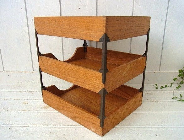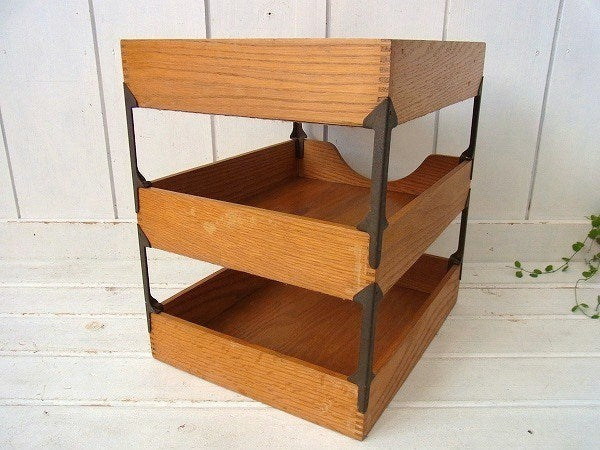 アメリカンビンテージ 3段式 木製・ヴィンテージ・ファイルトレイ デスクトレイ 書類トレイ USA