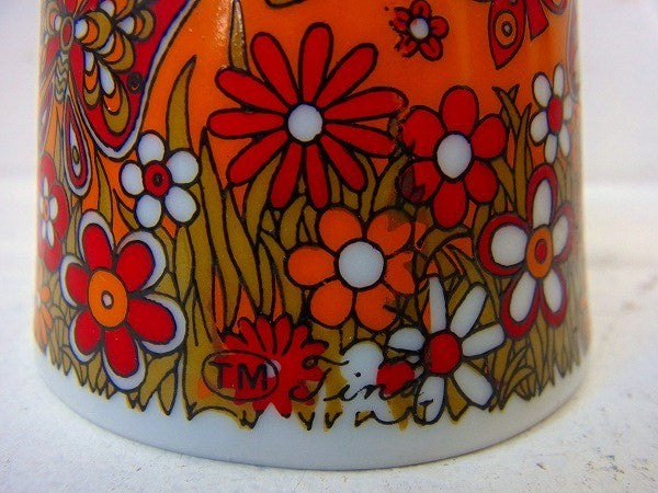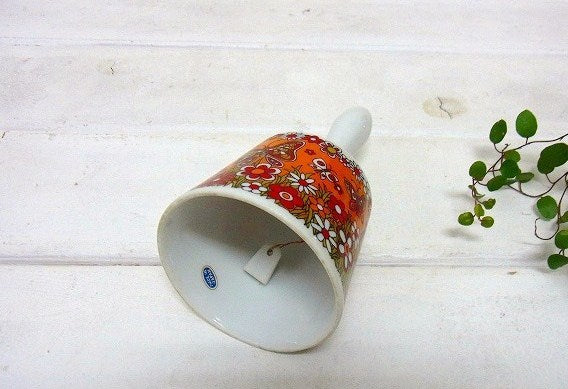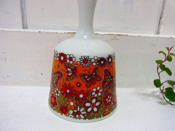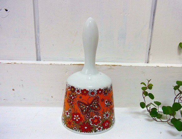 陶器製・蝶々&花柄・デッドストック・ヴィンテージ・ベル/呼び鈴(オレンジ)