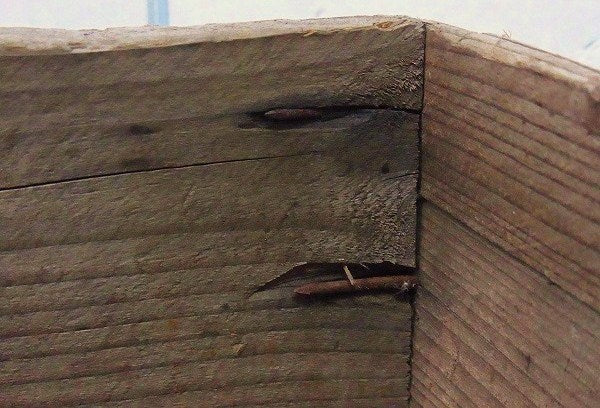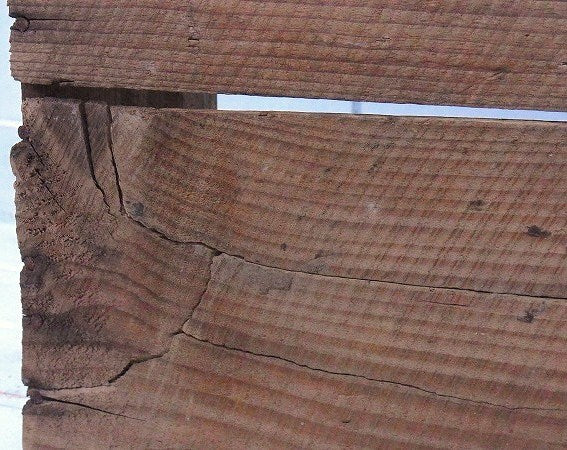 経年により全体にヨゴレやキズ、内側ボトムにヒビ・割れ・釘の出ている箇所等ざいます(画像参照)。