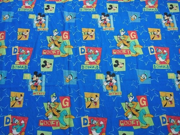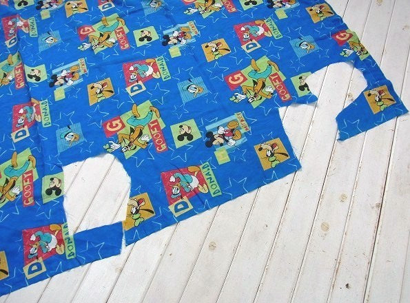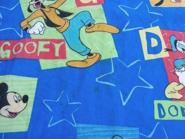 【ミッキー&ドナルド&グーフィー】リメイク用・ヴィンテージ・ユーズドシーツ(フラットタイプ) USA