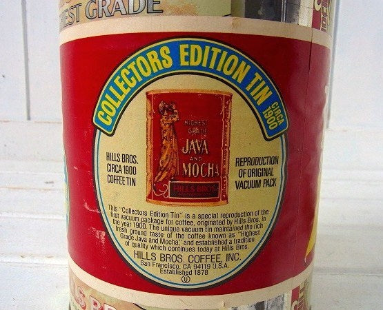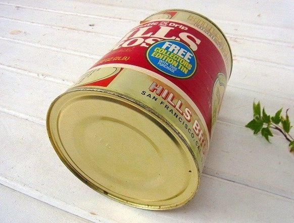 【HILLS BROS】ヒルスコーヒー・紙ラベル付きヴィンテージ・限定コーヒー缶/ティン缶 USA