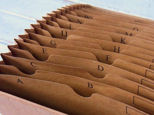 上部に【A~Z】の印字が入った、ジャバラ式のファイルケースになります。