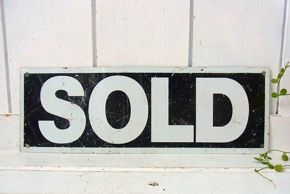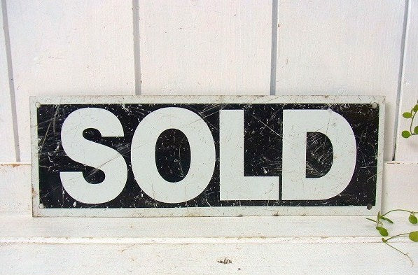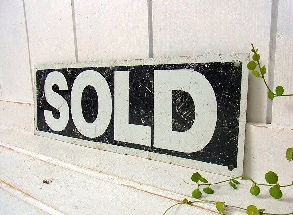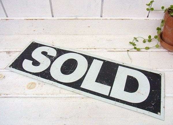 アメリカでみつけました・・『SOLD』のメタル製・ヴィンテージ・両面サインプレートです。