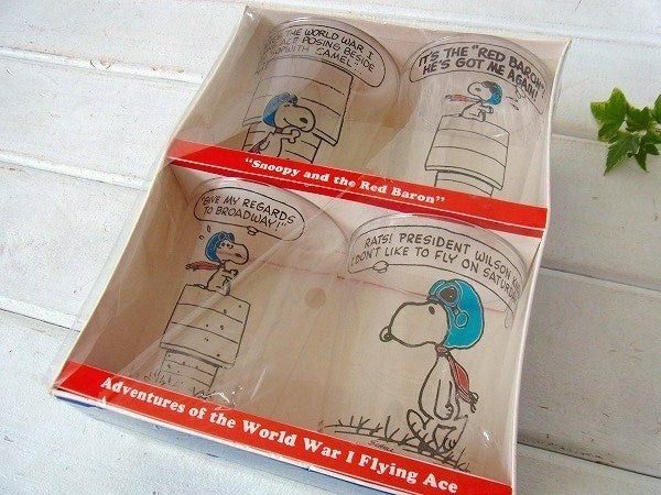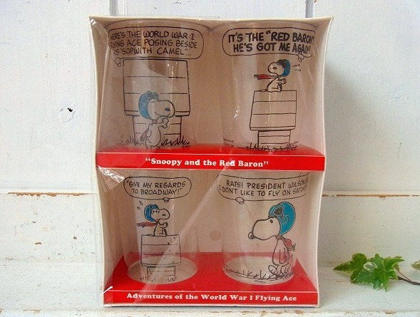 アメリカで見つけました・・ホールマーク社製の『スヌーピー・レッドバロン』デッドストック未使用・ヴィンテージ・プラスティック製・グラス・4個セットです。