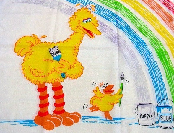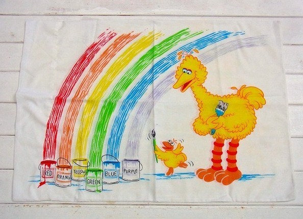 アメリカで見つけました・・・『セサミストリート』のレインボー柄・ヴィンテージ・USEDピロケース(枕カバー)です。