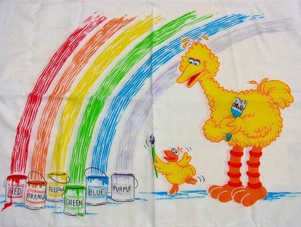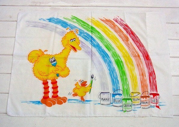 【セサミストリート】USA・ビッグバード・レインボー柄・ヴィンテージ・USEDピロケース/枕カバー