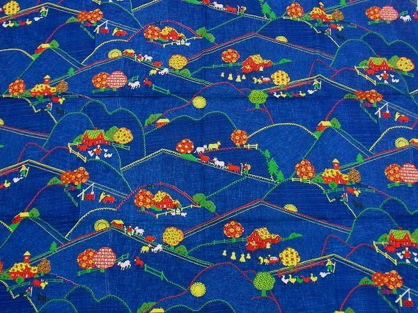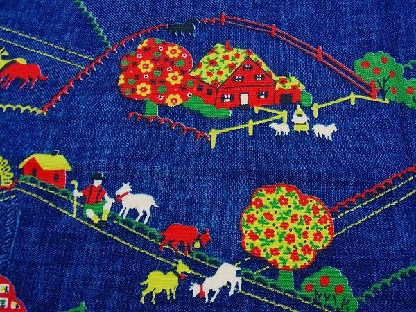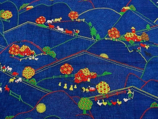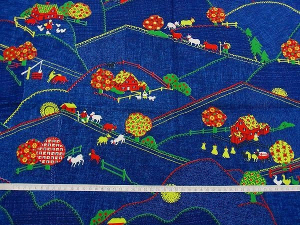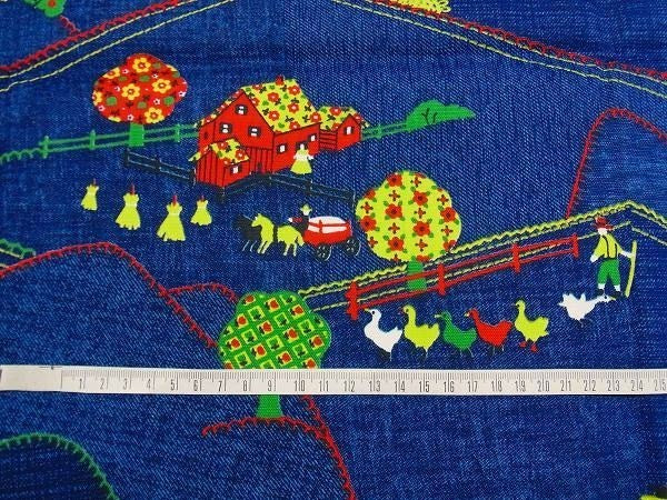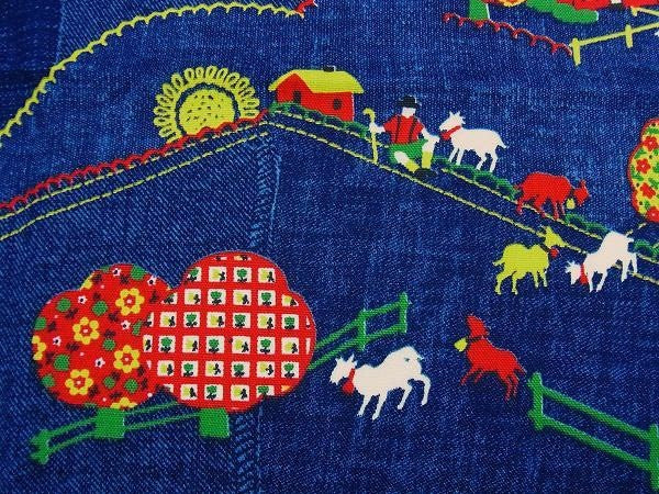 USA!デニム柄×キュートな牧場柄・デッドストック・ヴィンテージ・ファブリック/生地/テキスタイル