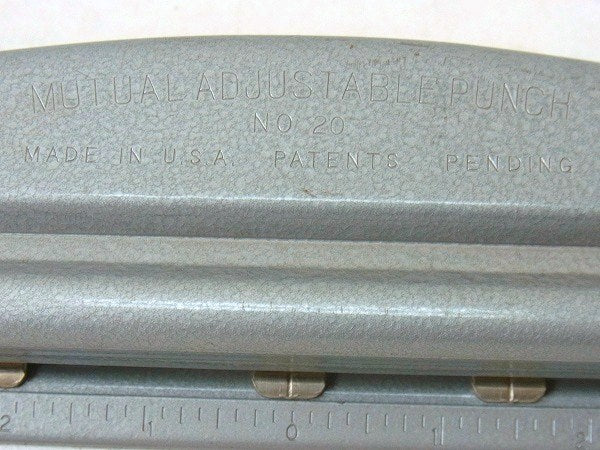 上部に【MUTUAL ADJUSTABLE PUNCH NO.20 MADE IN U.S.A. PATENTS PENDING】、下部に目盛り(インチ表示)が入っております。