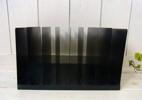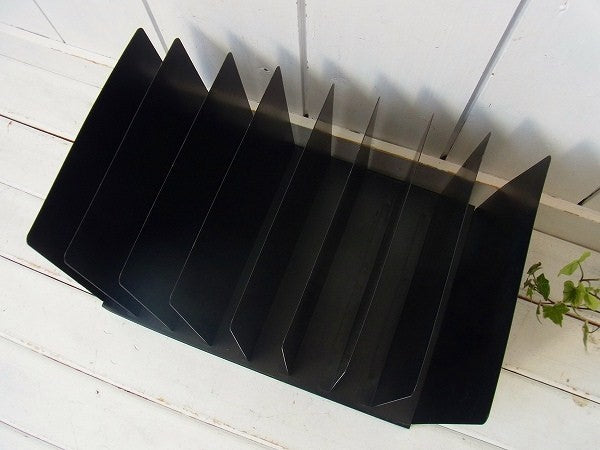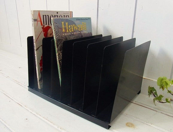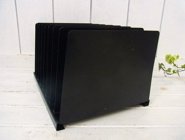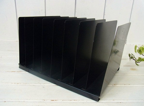 工業系の仕切り付き・黒色・メタル製・ヴィンテージ・書類スタンド/ブックスタンド USA