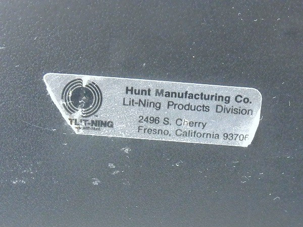 ボトムのラベルに【Hunt Manufacturing Co. Lit-Ning Products Division 2496 S.Cherry Fresno, California 93706】とございます。