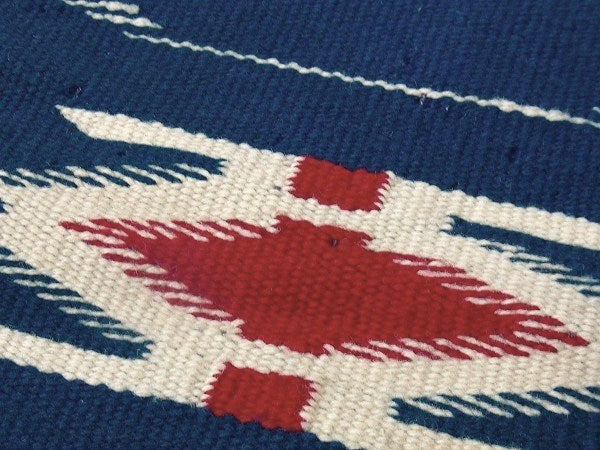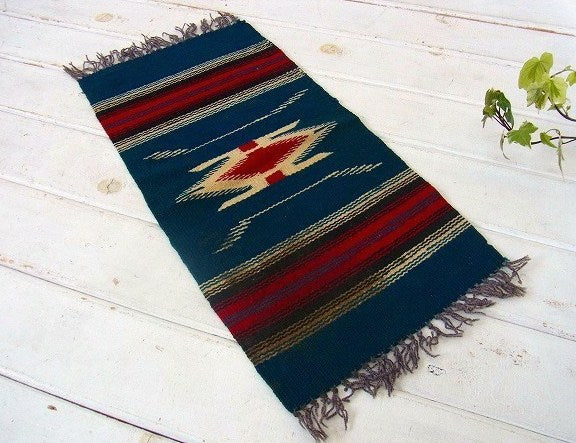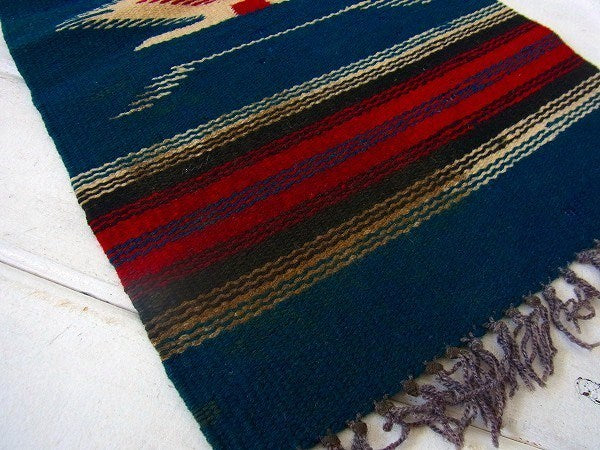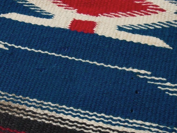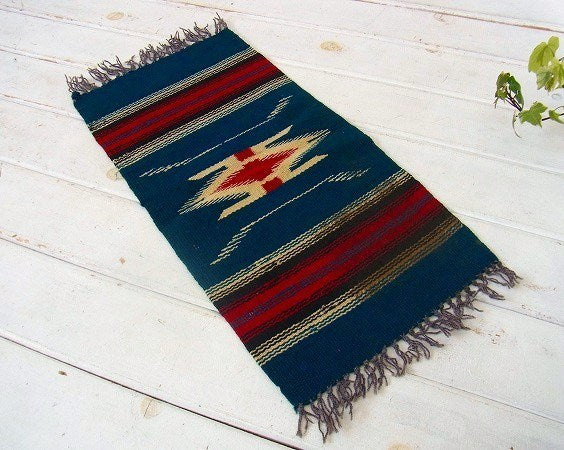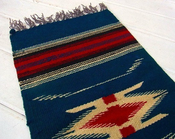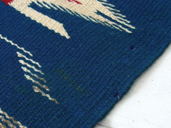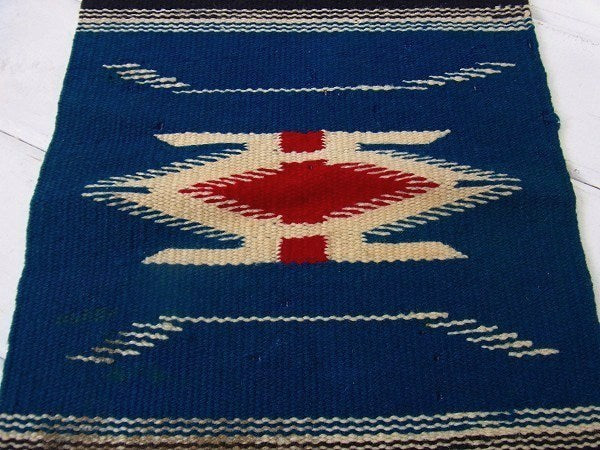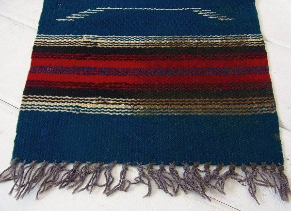 紺青色・チマヨ柄・小さなヴィンテージ・ラグ/マット/ネイティブ USA