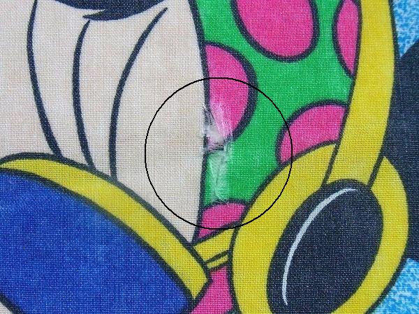 全体に多少の使用感があり、ヨゴレ箇所・プリントの抜けている箇所・数箇所にヤブレ箇所などございます(画像参照)。