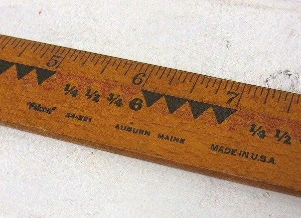 【Falcon】分度器付き・両面タイプの木製ヴィンテージ・定規/ルーラー/物さし USA