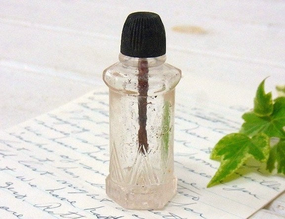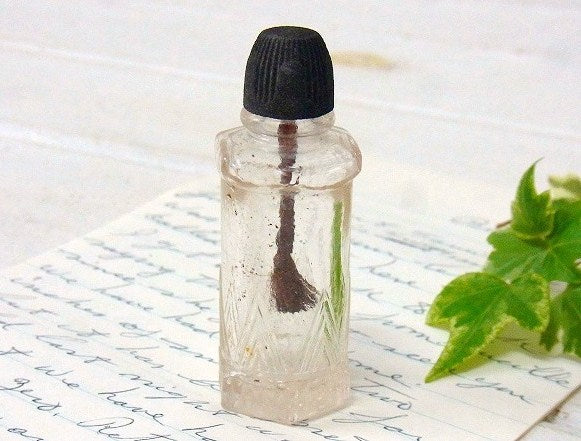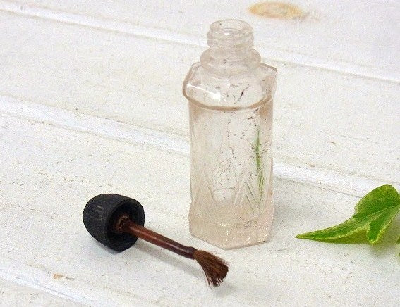 アメリカで見つけました・・マニキュアの刷毛付き・小さなアンティーク・ガラス瓶です。