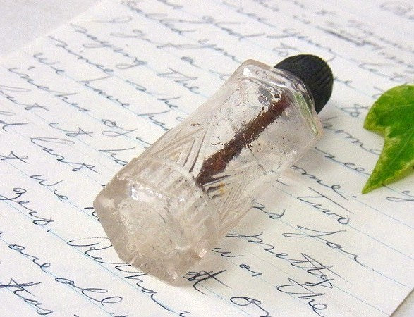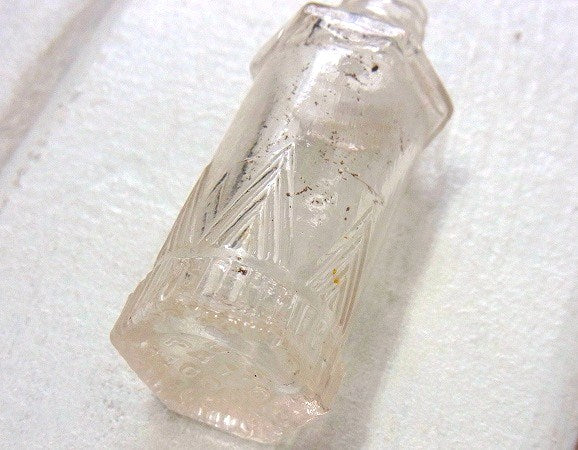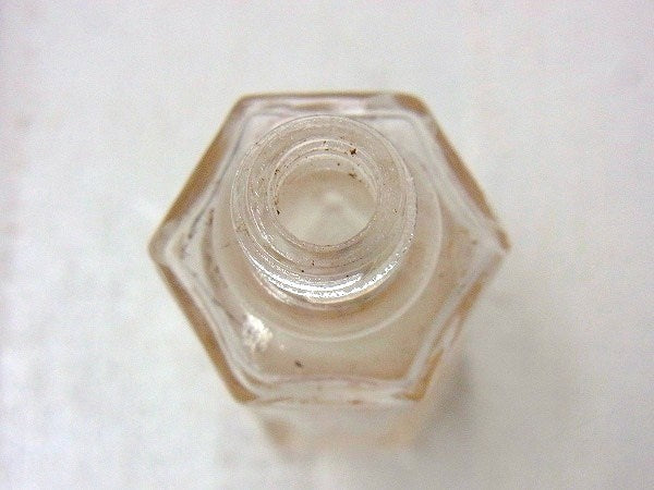 マニキュアの刷毛付き・小さな6角形のアンティーク・ガラス瓶/ガラスボトル USA