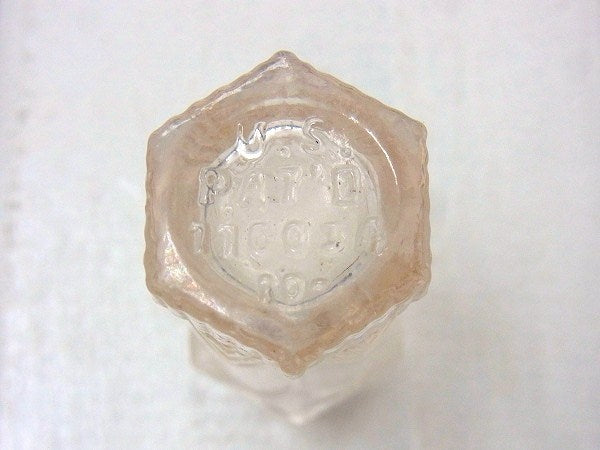 30's~40'sの6角形のガラス瓶で、下部に三角のエンボス模様が入っております。