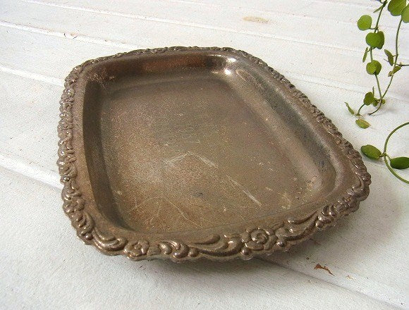 花柄モチーフのノベルティ・金属製・ヴィンテージ・トレイ/マネートレイ USA