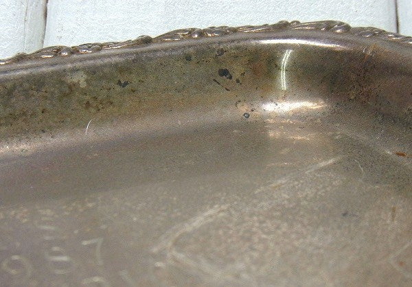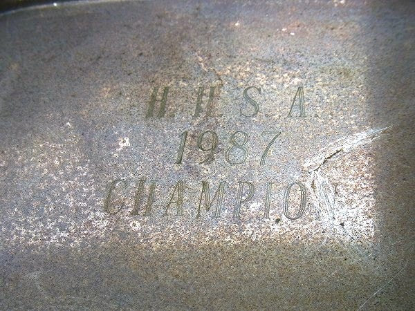 トレイ中央に【H.H.S.A. 1987 CHAMPION】と刻印が入っており、トレイの縁はお花のエンボス装飾が施されております。