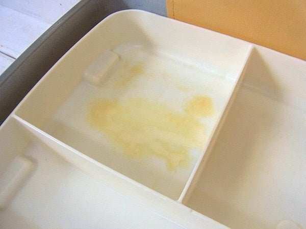 経年により多少のヨゴレ・スリキズ・仕切りトレイにシミよごれ・右側留め金具にダメージ等ございます(画像参照)。