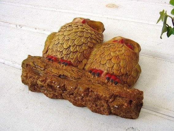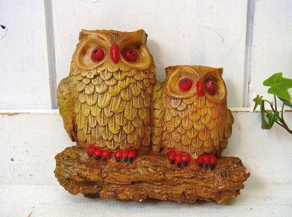アメリカで見つけました・・縁起物としても人気の高い幸せの鳥・フクロウ親子のセラミック製・ヴィンテージ・壁飾りです。