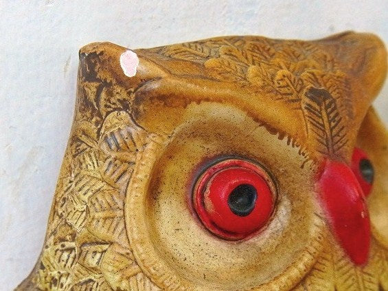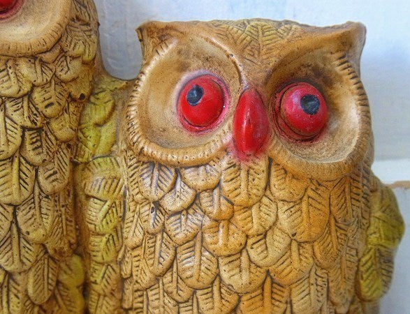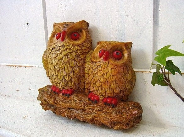 フクロウ親子・セラミック製・ヴィンテージ・壁飾り/ウォールデコ