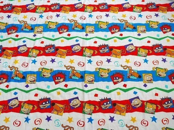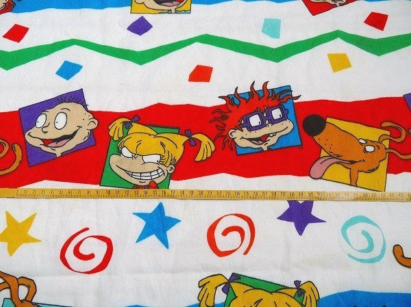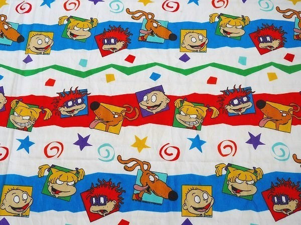アメリカで見つけました・・1才前後の赤ちゃん6人の冒険をユーモアたっぷりに描いた全米で大人気のファミリーアニメ・映画版『ラグラッツムービー(RUGRATS MOVIE)』のヴィンテージ・USEDフラットシーツです(ツインサイズ)。