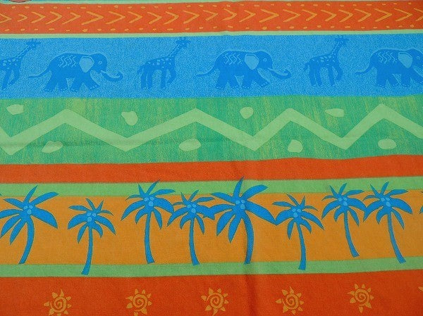 冒険が大好きなライオンの男の子【シンバ】と、ゾウ&キリン&太陽&ヤシの木など、大草原をイメージさせるプリントです。