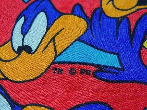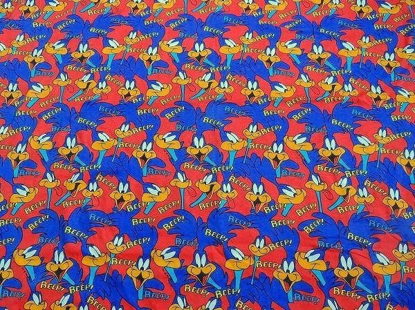 アメリカで見つけました・・ワーナーブラザーズを代表するアニメ『ルーニー・テューンズ』に登場する人気キャラクター【ロードランナー】のヴィンテージ・USEDファブリック製・ベッドカバーです。
