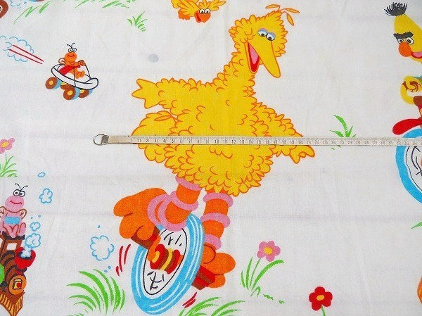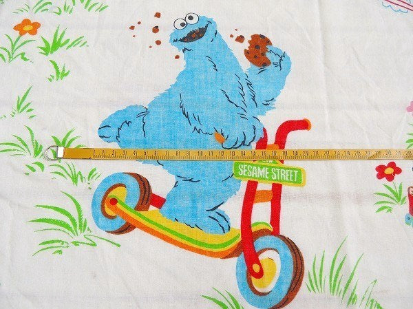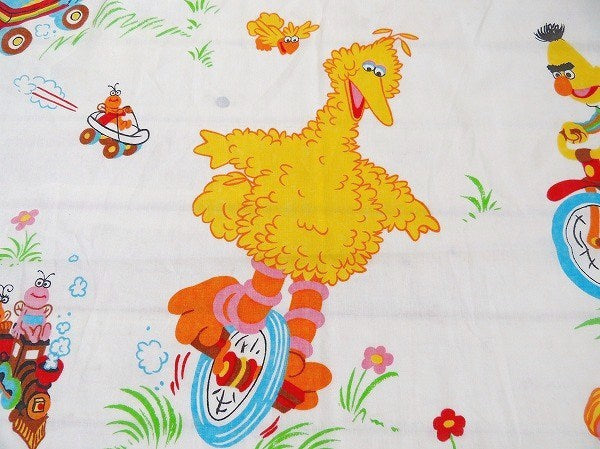 アメリカで見つけました・・『セサミストリート』の乗り物柄・ヴィンテージ・USEDボックスシーツです。(ツインサイズ)