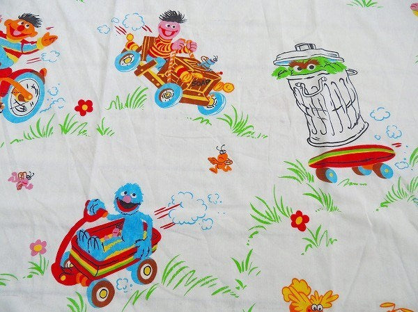 【セサミストリート】乗り物柄・ヴィンテージ・ユーズドシーツ(ボックスタイプ) USA
