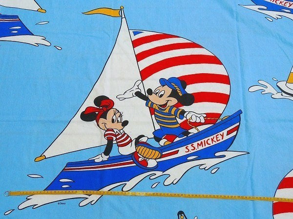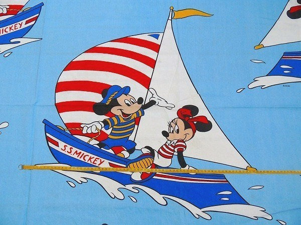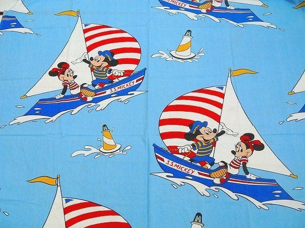 【ミッキー&ミニー】ヨット&マリン柄・ヴィンテージ・ユーズドシーツ(フラットタイプ) USA