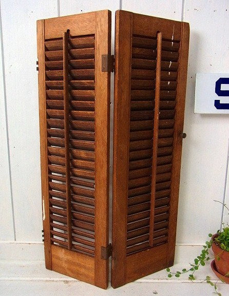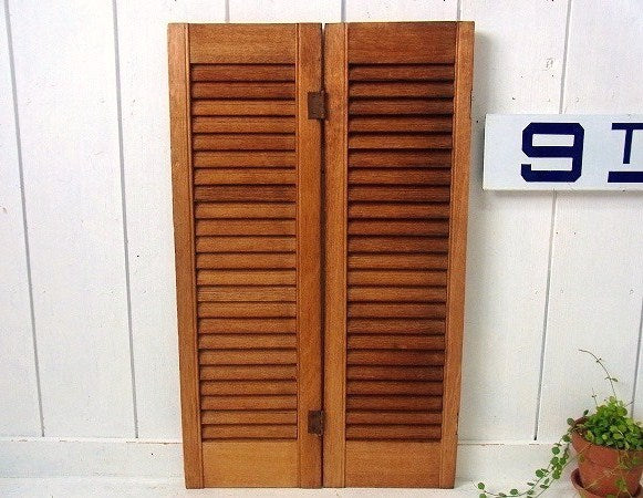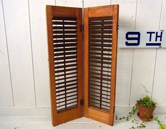 USA!白いペンキの付いた木製・アンティーク・ルーバー/ヴォレー/ウッドシャッター/建具