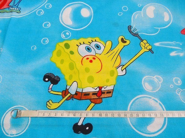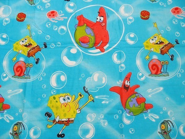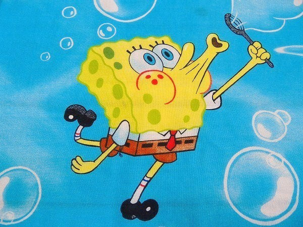 アメリカで見つけました・・・アメリカの人気テレビアニメ『スポンジボブ』のUSEDフラットシーツです。