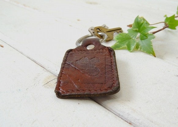 ビンテージ レザーキーホルダー クラシックカーの型押し&古鍵 2本付きです。