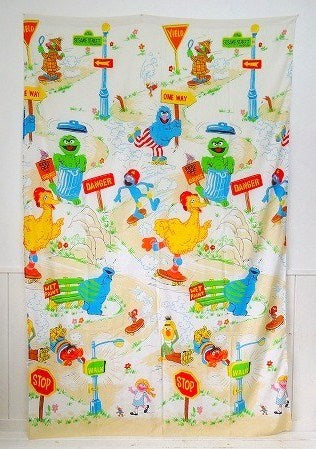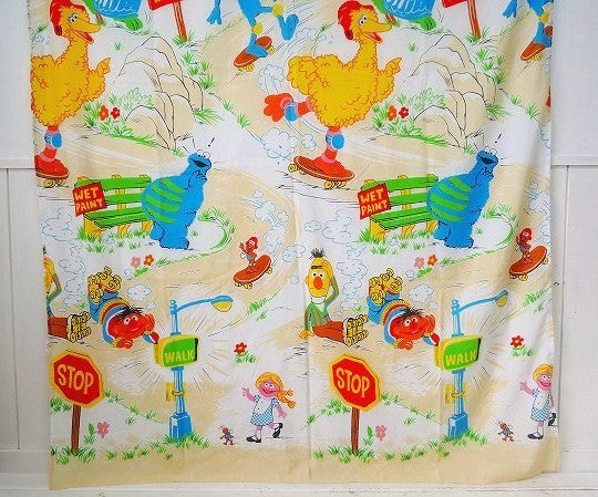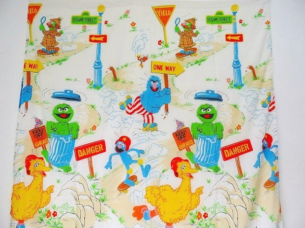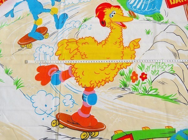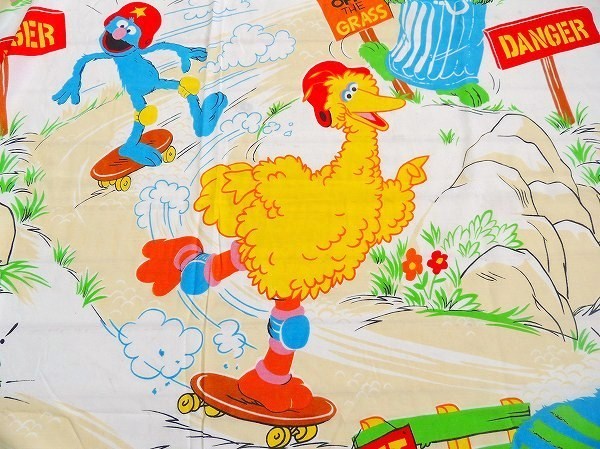 【セサミストリート】スケートボード&ローラースケート柄・ヴィンテージ・USEDフラットシーツ