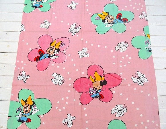【ミニーマウス】ディズニー・フラワー&蝶々柄・ヴィンテージ・カーテン/生地 USA