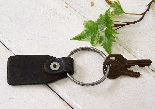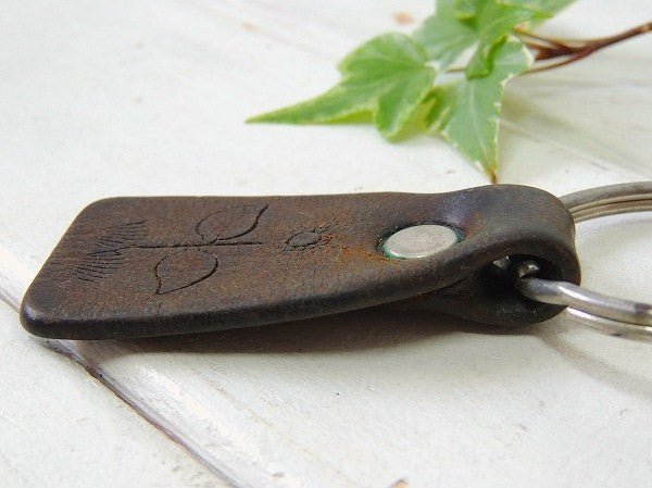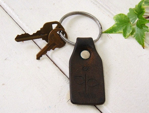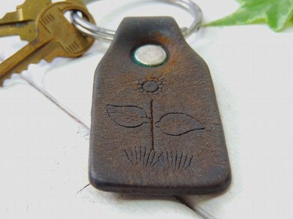 【レザー/革製】ひまわり柄・ビンテージキーホルダー・USA・古鍵2本付き