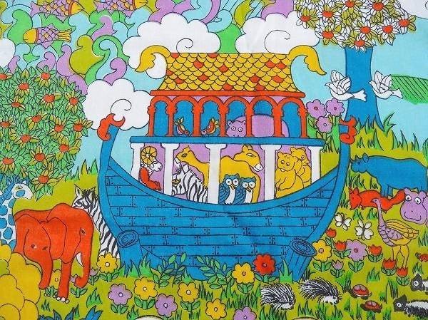アメリカで見つけました・・『ノアの方舟』のヴィンテージ・USEDフィットシーツです。