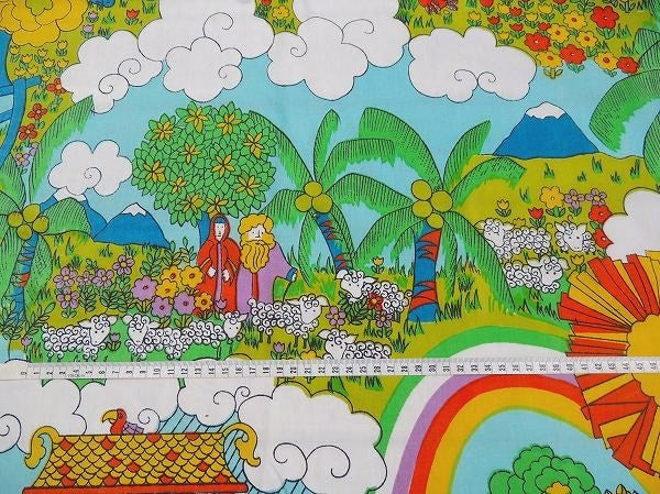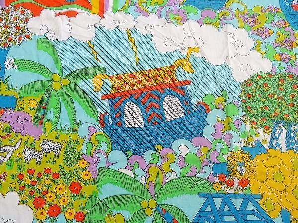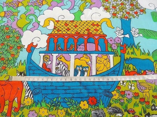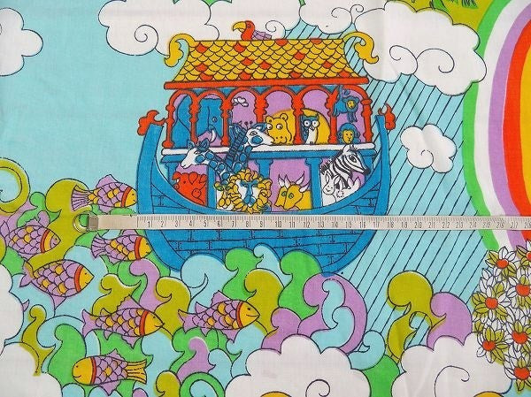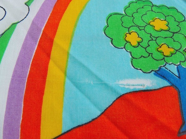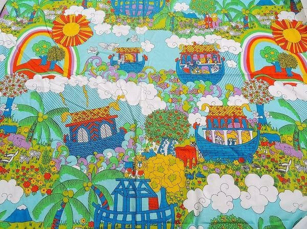 【ノアの方舟】動物&お花&レインボー柄のヴィンテージ・ユーズドシーツ(ボックスタイプ) USA