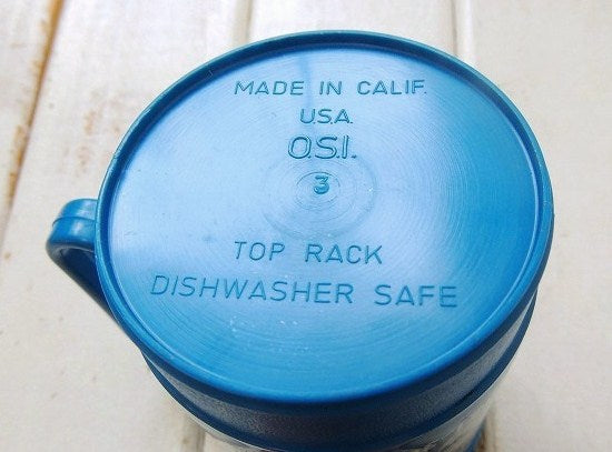 ブルーボディに【Vick Pace Ford Big Ford Country】と白色の文字が入っており、ボトムに【MADE IN CALIF. U.S.A. O.S.I. TOP RACK DISHWASHER SAFE】とエンボスがございます。