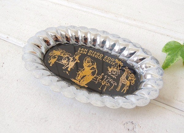 【サンディエゴ動物園】メタル製×ガラス製・動物柄・ヴィンテージ・トレイ/小物トレイ