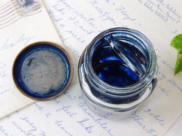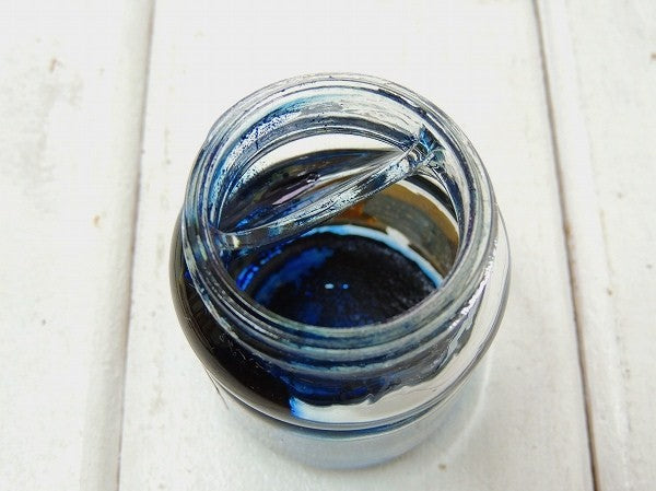 ガラスの内側の上部分に小さな仕切りがあり、フタを閉めた状態でボトルを逆さまにすると、小さな仕切り部分にインクが溜まる優れモノです。