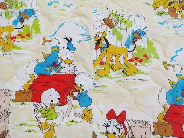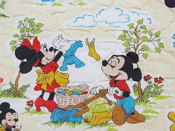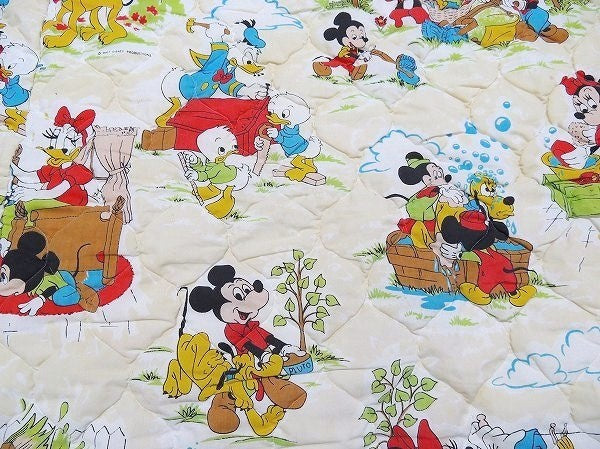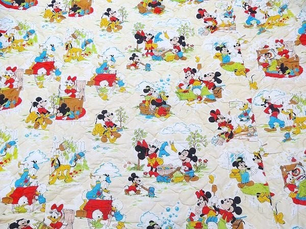 アメリカで見つけました・・ディズニー『ミッキー&フレンズ』のキルティング製・ヴィンテージ・USEDベッドスプレッド(ベッドカバー)です。