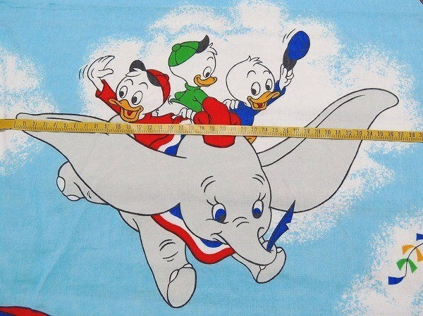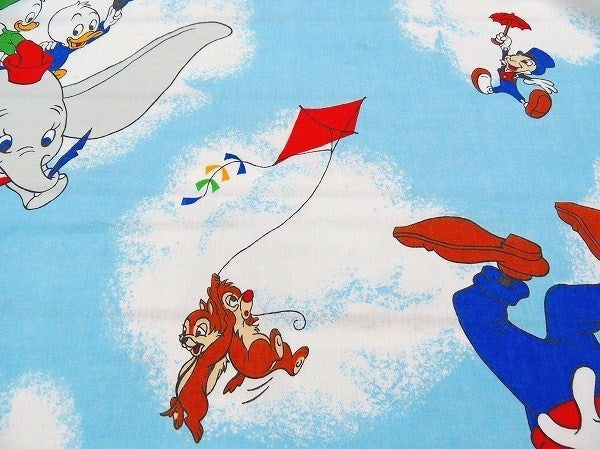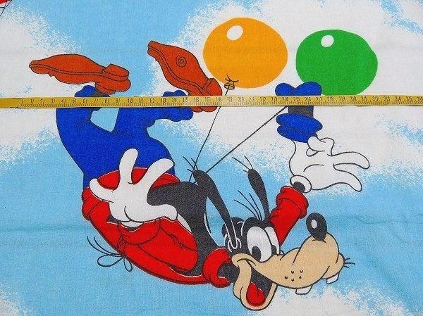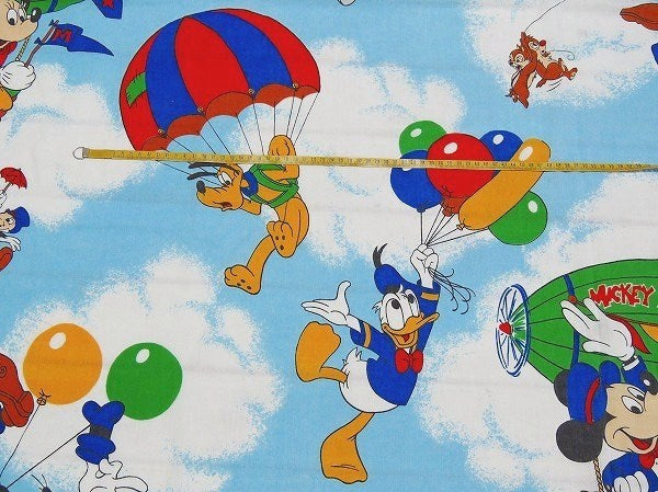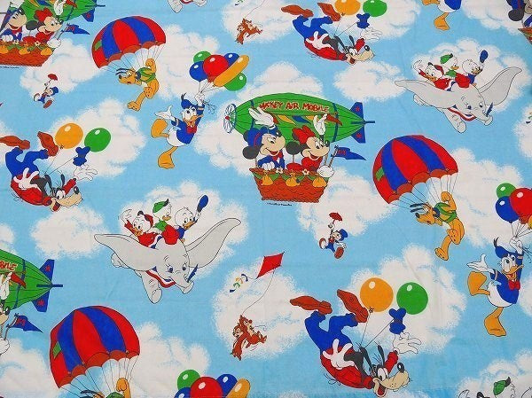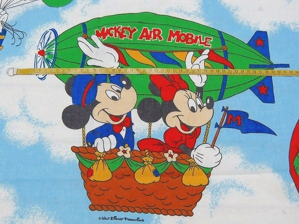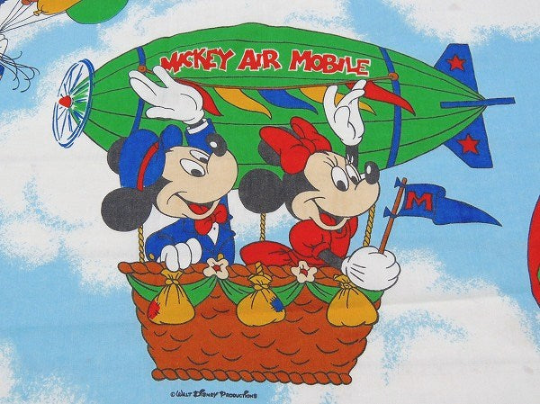 アメリカで見つけました・・ディズニー『ミッキー&フレンズ』の飛行船柄ヴィンテージ・USEDフラットシーツです。(ツインサイズ)