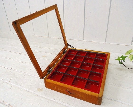 ペン先を販売する際に使用されていた、木製×ガラス製の古いショーケースになります。