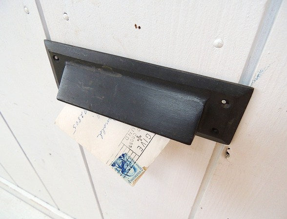 アメリカで見つけました・・黒色のアイアン製・アンティーク・レターポスト(郵便受け)です。